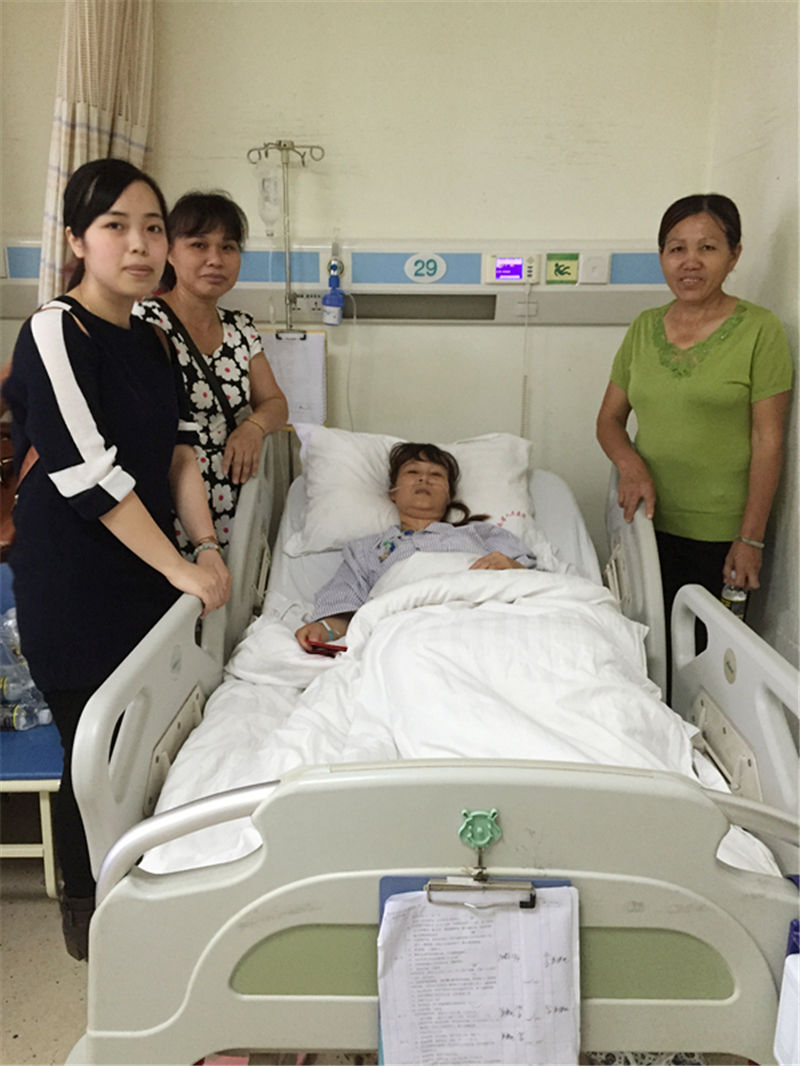 2018年4月16日下午14:00,行政人事部助理黃曉純與食堂主管吳燕嬌,工友陳顯金代表公司前往海南省人民醫(yī)院探望因生病住院做手術(shù)的員工方秀蓉,并送去公司的慰問跟關(guān)懷。剛剛做完手術(shù)的阿蓉姨,因長時(shí)間未進(jìn)食,身體很是虛弱。但精神狀態(tài)稍好些。她對(duì)公司的慰問表示感激,表示會(huì)好好養(yǎng)病,早點(diǎn)回來工作。