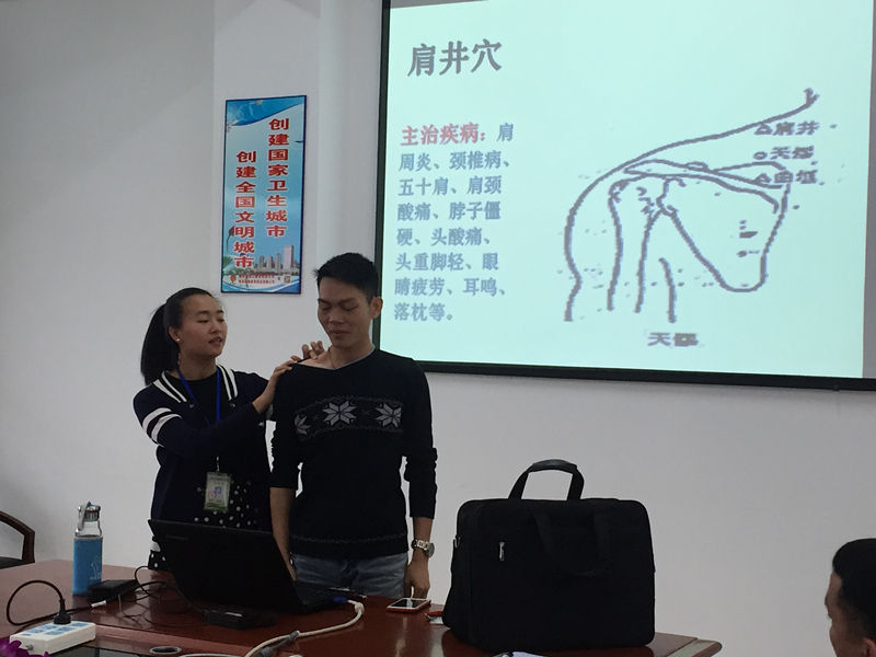 講座內(nèi)容貼近生活。幽默風趣。張雪老師用淺顯易懂的語言介紹“健康生活”的概念,從與生活,工作息息相關(guān)的職業(yè)病,救護知識,穴位保健等出發(fā),結(jié)合圖片并通過日常點滴事例,認真詳細講解了如何預防職業(yè)病及如何通過穴位緩解身體疼痛等問題,F(xiàn)場還為員工示范如何辨識各個穴位,通過穴位療法來改善頸椎病,肩周炎等。講座結(jié)束后,我司員工還同張雪老師就有關(guān)疾病預防和健康知識進行了互動交流。