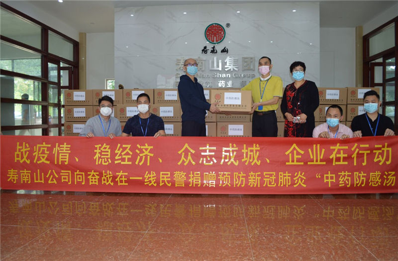 2020年3月3日上午,海南壽南山參業(yè)有限公司通過(guò)海南省醫(yī)藥行業(yè)協(xié)會(huì)向海南省公安廳、?谑泄簿值囊痪干警捐贈(zèng)了價(jià)值11.7萬(wàn)元的預(yù)防新冠肺炎“中藥防感湯”。省廳卜主任、市局陳主任、協(xié)會(huì)魯秘書(shū)長(zhǎng)、我司副總經(jīng)理戴初雄先生攜各部門經(jīng)理共同出席了捐贈(zèng)儀式。